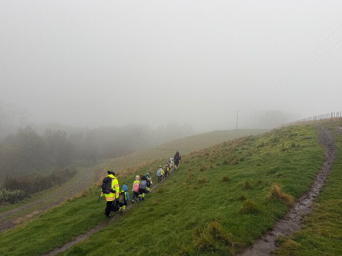 One of our weekly kindergarten groups - New Shoots - off on a misty adventure.
