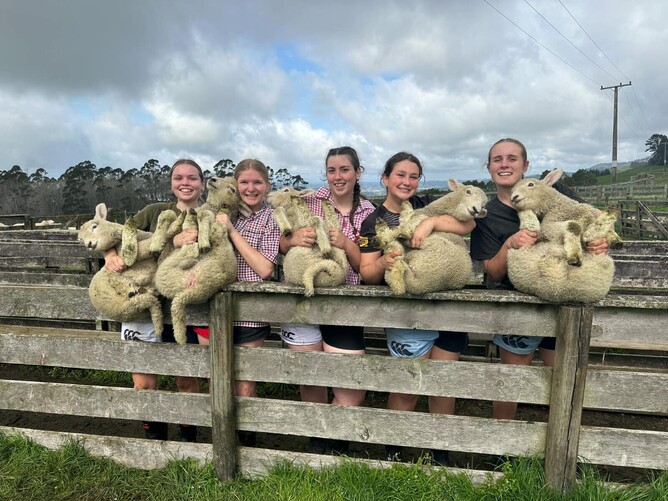 Ag. students of Toi Ohomai giving Hamish a hand, and training in sheep handling skills.